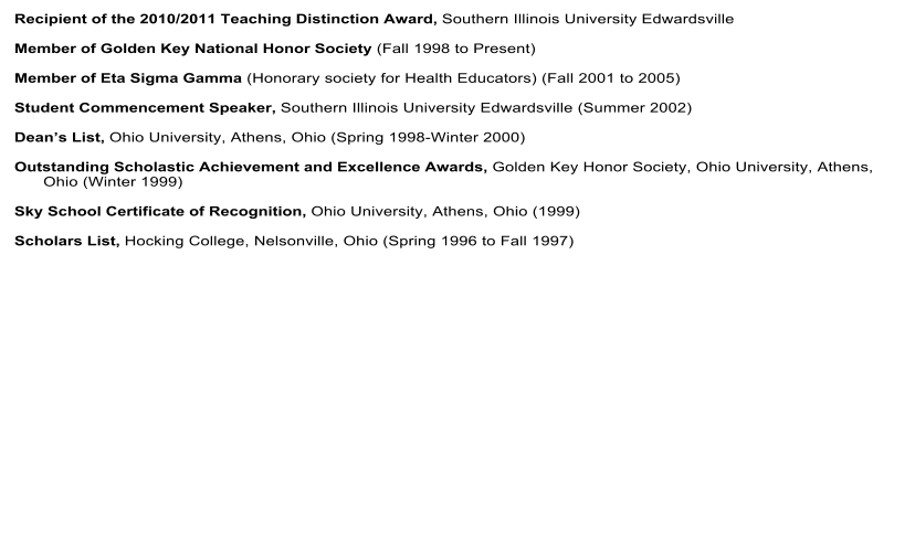 Bachelor of Science in Health Education (Summa Cum Laude) - Department of Kinesiology and Health Education, Southern Illinois University