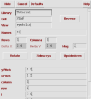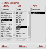 This is essentially the same library browser that you access when you start Cadence Design Tools. It lets you choose the library, cell and cell view, your selection will be transferred to the Instance options menu. For this case, the library will be "NCSU_TechLib_tsmc03d", the call name will be "ntap" and the view will be "Layout"