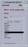 The correct library is "NCSU_Analog_Parts", so, select this library if it is not selected when you opened the Component Browser. After all, the window should appear like shown above.