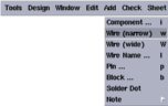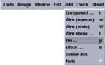 Here, you have to select the design editing tool that you will use to enter your design. The tool depends on the hierarchy level of your design. If you click and hold the left mouse button on the tool field, you will see the available tools. Only three of these tools will be used for all the examples.