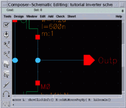 The following is an example for a manually created inverter symbol, which was obtained by editing the symbol above.