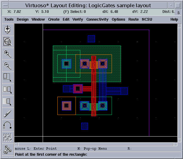 To address this problem, we can easily draw an extension to the already existing n-well using the rectangle command.