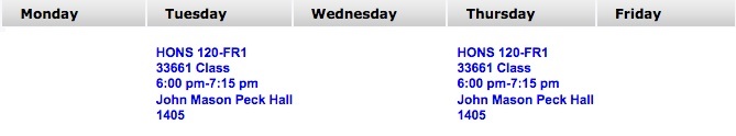 Look at the course listed below. Let's identify the number of minutes the class meets.