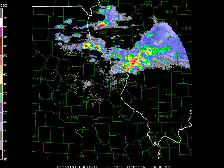UPDATE May 5 - An NWS damage survey has revealed that this storm produced at least 9 tornadoes in the St. Louis CWA - 6 in the Greenville, IL area (4 F1 and 2 F0) and 3 (all F1) in the Kimmundy, IL area. The St. Louis NWS has posted a summary of the damage survey with tornado track maps here. This damage survey does NOT include damage done in the Staunton-Livingston, IL area, where two semi trucks and a freight train were blown over. I will post additional information as it becomes available.