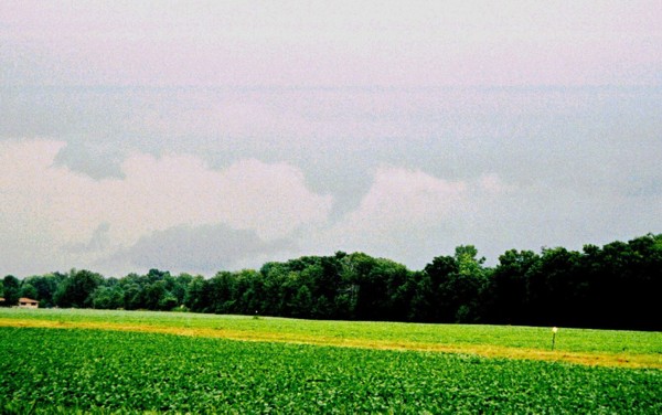 I got peppered with a little small hail, and some very heavy rain, around the time I took this picture, when a small cell that formed near Bethalto and moved east got drawn in and merged with the main storm near Vandalia. Due to 4th of July plans I broke off there and headed home, though I figured (correctly) that if I stayed with it and tracked it east toward IN it would eventually go severe. It did, producing sporadic severe reports from Effingham east to the Indiana line, then quite a few in southern IN and northern KY - mostly wind reports.