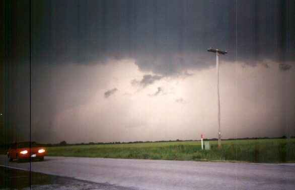I headed south on 4 to 143, then headed west the few miles to my home on the east side of Edwardsville. I could see nice towers going up ahead, as the line continued to build south. As I headed west on 143, I realized I was back in the inflow, and a couple miles before I crossed I-55, I got a real blast from the south of inflow racing into the backbuilding storm to my north. I looked that way, and saw a small lowering with lots of scud around it. In front, a scud tag moved from the left to the right. Was this scud cluster rotating? Naw, I told myself, in what may have been a big mistake. Probably just outflow pushing the scud tag along. I continued home, thinking 1) this was just another meaningless scuddy lowering like other small, meaningless, scuddy lowrings I'd seen all day, 2) I had to get home because of my commitments, and 3) the storm building to the west would chase me east or force me into a core-punch if I stopped now.