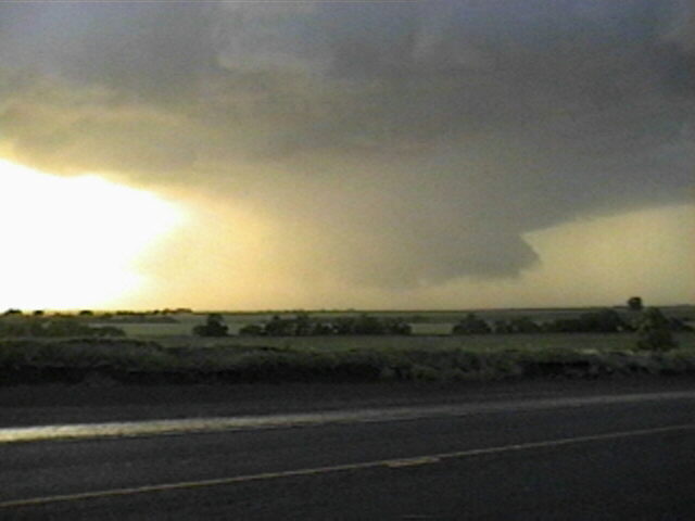6:17 – heading N on 183 for possible intercept near Hobart. Start to see other chasers as soon as I'm on 83. Here is what the storm looked like at this early stage - low-topped, rather high based, and not at all impressive - but the shearing off of the storm toward the NE told me the shear was conducive to supercell development if the storm could get going.
