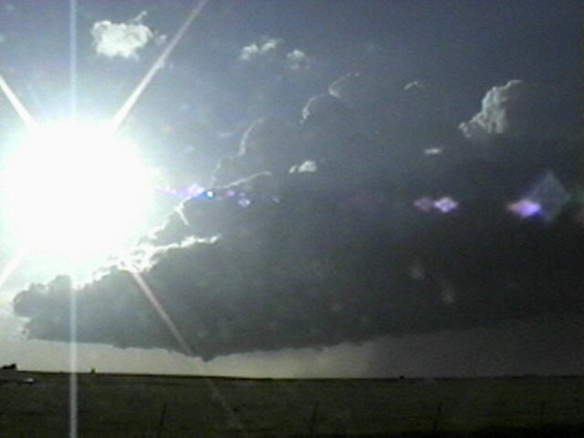 7:25 – Very nice beavertail visible – have been watching it for 20 minutes now. The beavertail looked like this when it first appeared and grew to this in about 20 minutes - very impressive! Storm has produced one small wall cloud and various scuddy lowerings, and these were showing slow but noticable rotation. Towers have been rock-hard since about 7 and are now going higher. But only a little lightning and not a lot of precip – storm looks LPish. Lots of chasers watching storm.