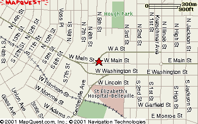Driving Directions: From St. Louis, Missouri: Take I-64 (U.S. 40) across the Poplar Street Bridge heading east for eight miles. Take I-255 south five miles to Illinois Route 15. Take Route 15 southeast six miles to Illinois Route 159. Take Route 159 (Illinois Street) north one mile to the square in Belleville. Turn left (west) on Main Street and proceed five blocks to the Richland Creek professional complex located at 521 West Main Street, Belleville. From Springfield, Illinois: Starting at Springfield, Illinois, take Business Route 55 south for 3.3miles. Continue on I-55 heading south for 76.8 miles. Take Highway 159 south for fourteen miles to Main Street. Turn right on Main Street proceed five blocks to the Richland Creek professional complex located at 521 West Main Street, Belleville.