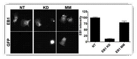 with EB1 knock down (KD) or MM control plasmids and stained with anti-EB1