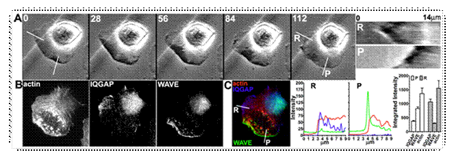 WAVE2. (C) Fluorescence intensity of actin (red), IQGAP1 (blue) and WAVE2