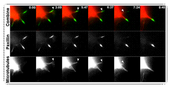 were co-transfected with GFP-paxillin and monomeric RFP-beta-tubulin subunit