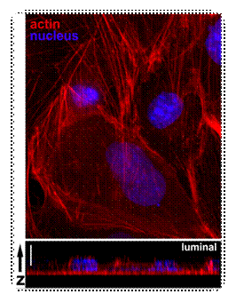 monolayer of endothelial cells was stained for actin and DNA. The z-series of