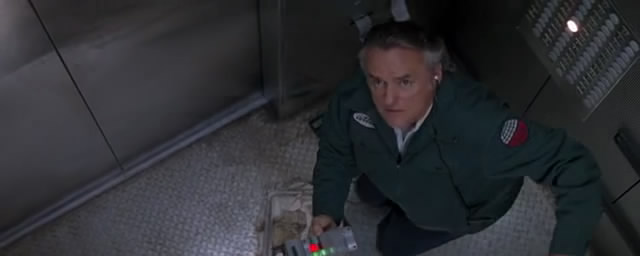 Speed opens up with a very interesting opening scene. The entire opening sequence is just a camera falling from the top of an elevator shaft to the ground floor. We then see Howard Payne (Dennis Hopper) killing a security guard by stabbing him in the head. After he dies, we see people entering an elevator and becoming trapped after a bomb detonated part of the elevator. A car then comes flying down a highway with two SWAT teams members; Harry Temple (Jeff Daniels), and Jack Traven (Keanu Reeves) getting out and meeting with the other members of the SWAT Team. Their leader Lt." Mac" McMahon (Joe Morton) tells them that a bomber, Payne, has trapped people in a elevator for ransom. After Jack makes a remark, Mac sends him and Harry to check the device. After doing so, they take matters in the own hands, causing the bomber to blow the device early. The SWAT team gets everybody out of the elevator safely before it comes crashing to ground floor.
