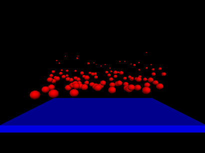 I really wanted to think in terms of rain drops rather than balls. So instead of bouncing, I want things to go splat. The splat is, however, utterly artificial and doesn't capture any of the real behavior of a drop of liquid hitting a solid.
