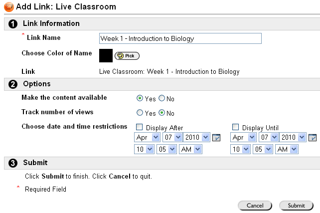 | The best part about Wimba, is that it lets you record a lecture once and link to it within a Content Area so as to eliminate several steps. Wimba also allows you to link to multiple courses or within future semesters' course shells. |