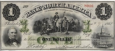 In 1780, the War of Independence of the American Colonies from Great Britain seemed lost. The colonies and the Continental Congress had issued paper money to pay expenses of the war. The British, understanding the importance of paper money to the war, flooded the colonies with counterfeits. Their strategy worked. Colonial paper money suffered hyperinflation and became worthless. "Not worth a Continental" became idiomatic. With no money to buy supplies or to pay troops, the war seemed lost. The Continental Congress called on Robert Morris (1734-1806) a major, probably the biggest, merchant-banker in Philadelphia to be Superintendant of Finance to use his relationships with many merchant associates to get those supplies. One action Robert Morris took was to establish the Bank of North America. . Its operation, following the example of the Bank of England, would be the model of money creation from that time to our own. In letters to Benjamin Franklin, John Jay, and Robert Smith, Morris wrote: "I mean to render this [the Bank of North America] a principal pillar of American credit, so as to obtain the money of individuals for the benefit of the Union, and thereby bind those individuals more strongly to the general cause by the ties of private interest" (Sumner, 1968b, Vol. 2:27). Morris reasoned that "the monied interest" would support the new government because they would receive dividend income from the bank. In his letter, Morris blamed depreciation of the currency on it being paper money. Nonetheless, subscribers would purchase bank stock with paper debt certificates and the Bank of North America would issue its loans as paper bank notes.