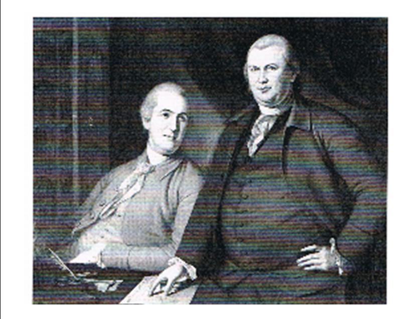 Gouverneur Morris is on the left, Robert Morris is on the right. Gouverneur Morris was descended on his mother's side from the Dutch who governed New Amsterdam before the British took it over and renamed it, New York. ("Gouverneur" is the french word for governor. Gouverneur was his mother's maiden name.) Gouverneur was a co-founder of the Bank of North America and a delegate to the Federal Convention that drafted the Constitution. Although James Madison is called the "Father of the Constitution," a reading of Madison notes taken during that convention convinced me that Gouverneur Morris was far more influential in shaping the Constitution. Although he chose not to attend the first month of the four and a half months of that convention,Gouverneur Morris spoke 173 times, more than any other delegate. He made the fateful motion on August 16, 1787 to deny Congress the power to issue paper money, a power it had had under the Articles of Confederation and crucial to financing the early years of the war.
