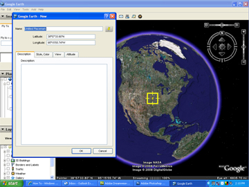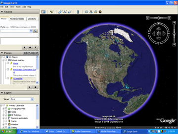 When you open GoogleEarth (of course after you download and install from http://earth.google.com), you will see a picture of the globe. You will then want to begin navigating to various sites on the globe.