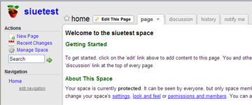 The first thing to know is that, initially, everyone can edit your wiki (this is the default setting). To edit your space, you click the "Edit This Page" button on the top menu bar.