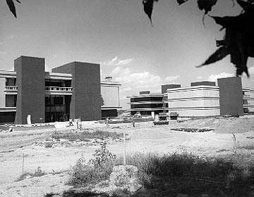 of Lovejoy Library (left) and the Peck Building (right) begin to assume
