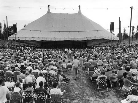 The gentle slope of the land afforded a clear view of the stage inside the tent.