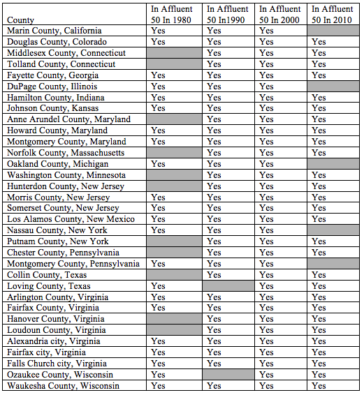in the most affluent 50 in 1980, 1990, 2000, and 2010 and another 18