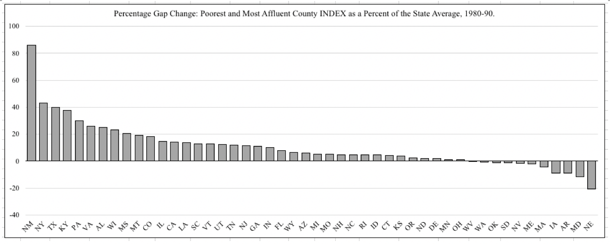 the Most Affluent County INDEX by State, 1990,